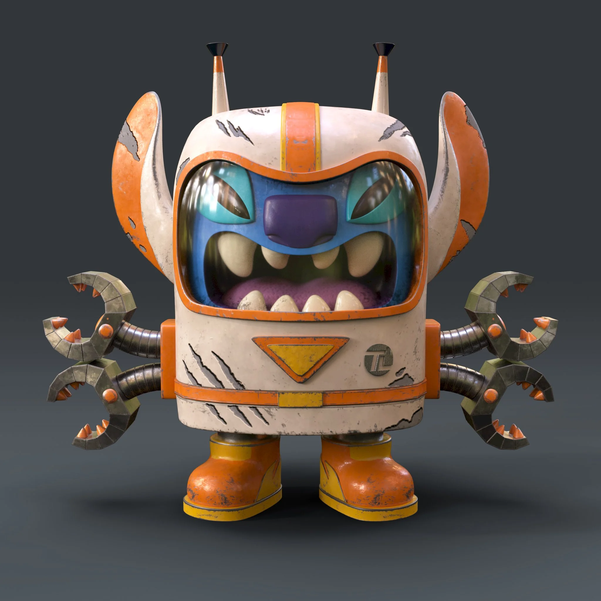 Here is a Stitch Model that I created as a part of the Tomorrow Landers Series, which is an artistic re-imagining of classic Disney characters as super galactic heroes. Original concept by Designer Eric Tan. Final production Toy model can be seen below!